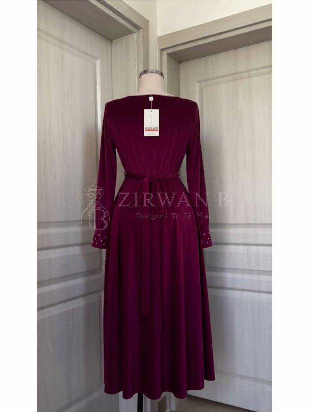 Sleeves: Elegant, long sleeves that add coverage and sophistication.